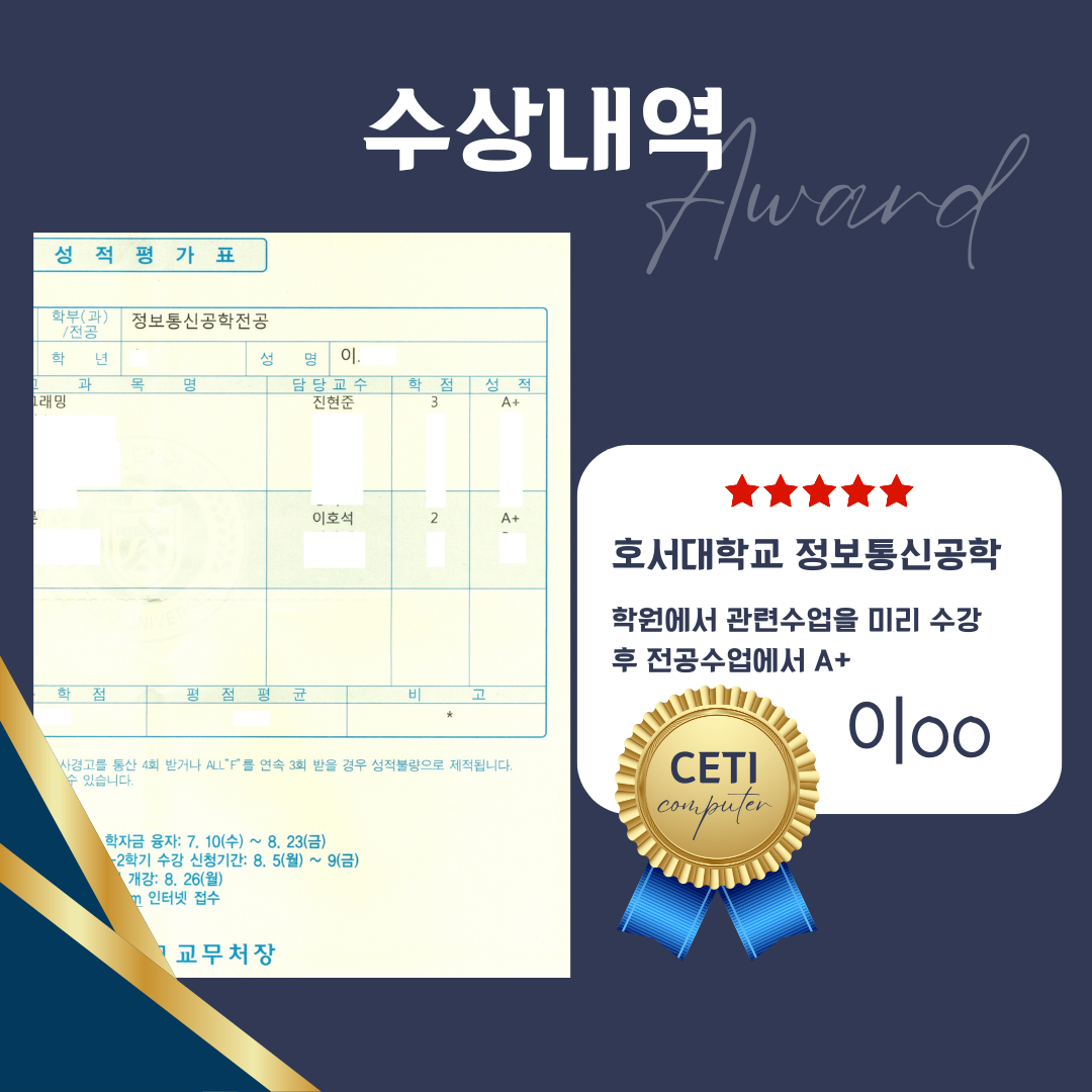 호서대학교 정보통신공학부 이OO 학생이 학원에서 관련 수업을 미리 수강 후 전공수업에서 A+ 받음