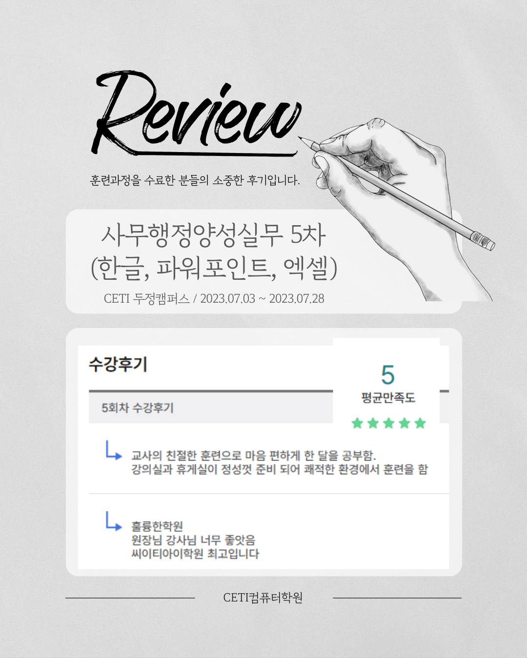 과정명 : 사무행정양성실무(한글, 파워포인트, 엑셀) 5차