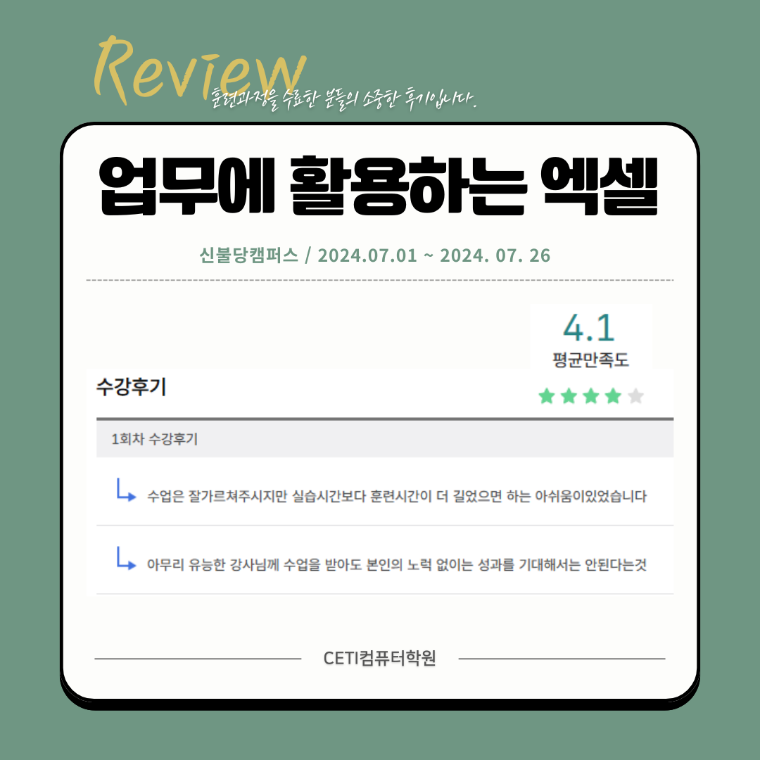훈련 종료 후 훈련생들이 고용24홈페이지에 직접 올린 소중한 후기입니다.
