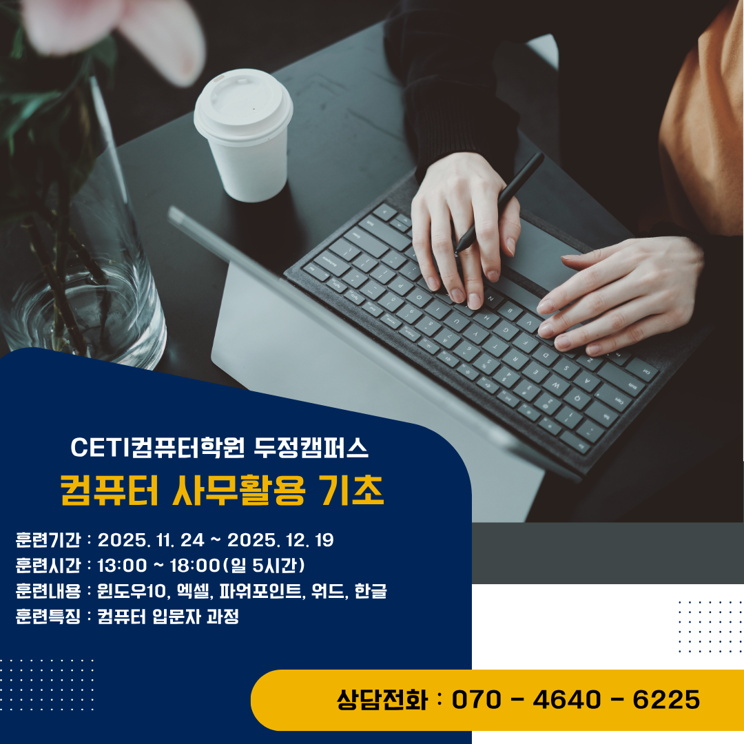 훈련장소 : CETI두정캠퍼스(충남 천안시 서북구 늘푸른3길 24 3층, 4층 (부강빌딩, 두정동)
