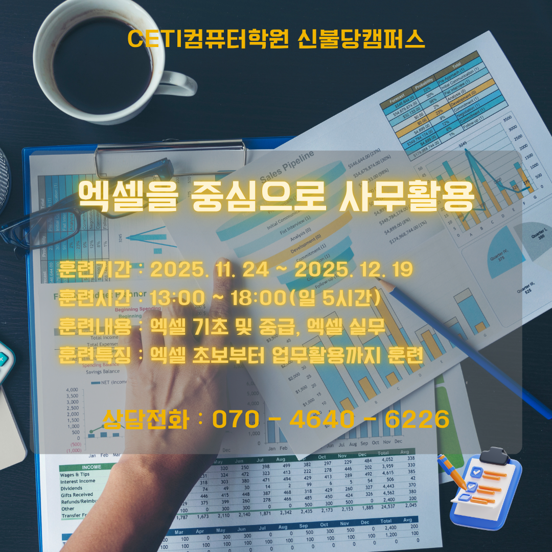 훈련장소 : CETI신불당캠퍼스(충남 천안시 서북구 불당22대로 92 316호, 317호 (마블러스티타워, 불당동)